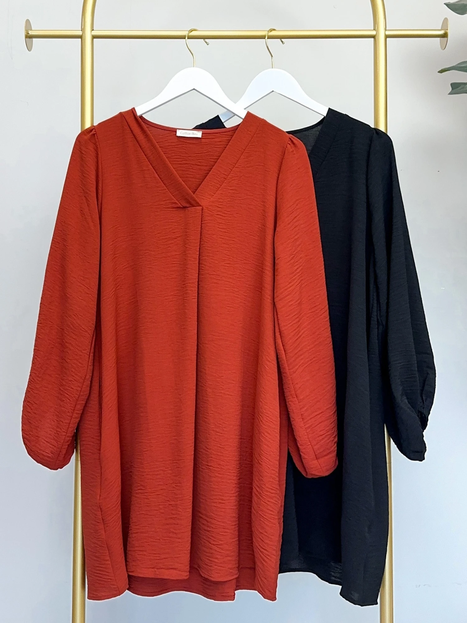 Features: V-Neck, Puff Sleeves, Long Sleeves