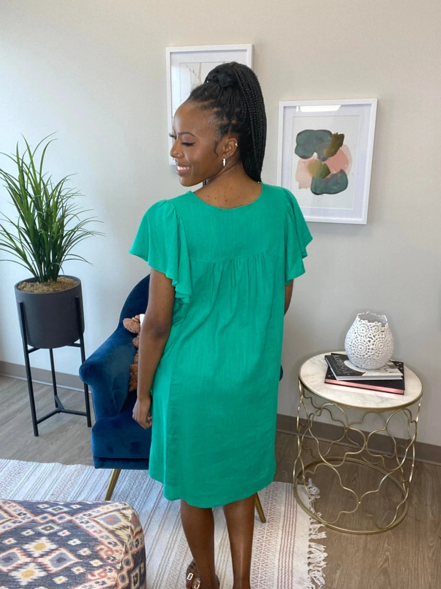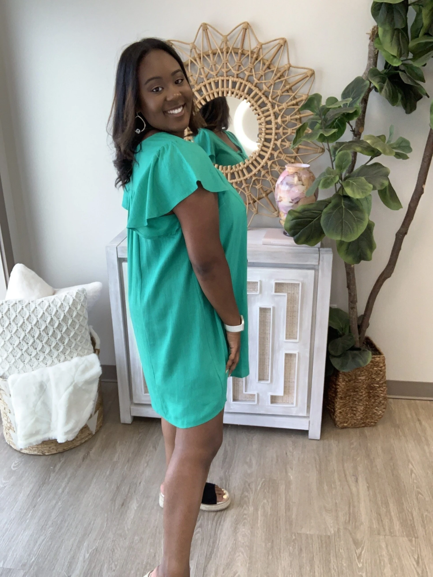 The “Convinced Of It Dress” has arrived! This super cute green dress is just what you need! You can’t go wrong with the v-neck with the cross tie! Be sure to snag one before they are gone!