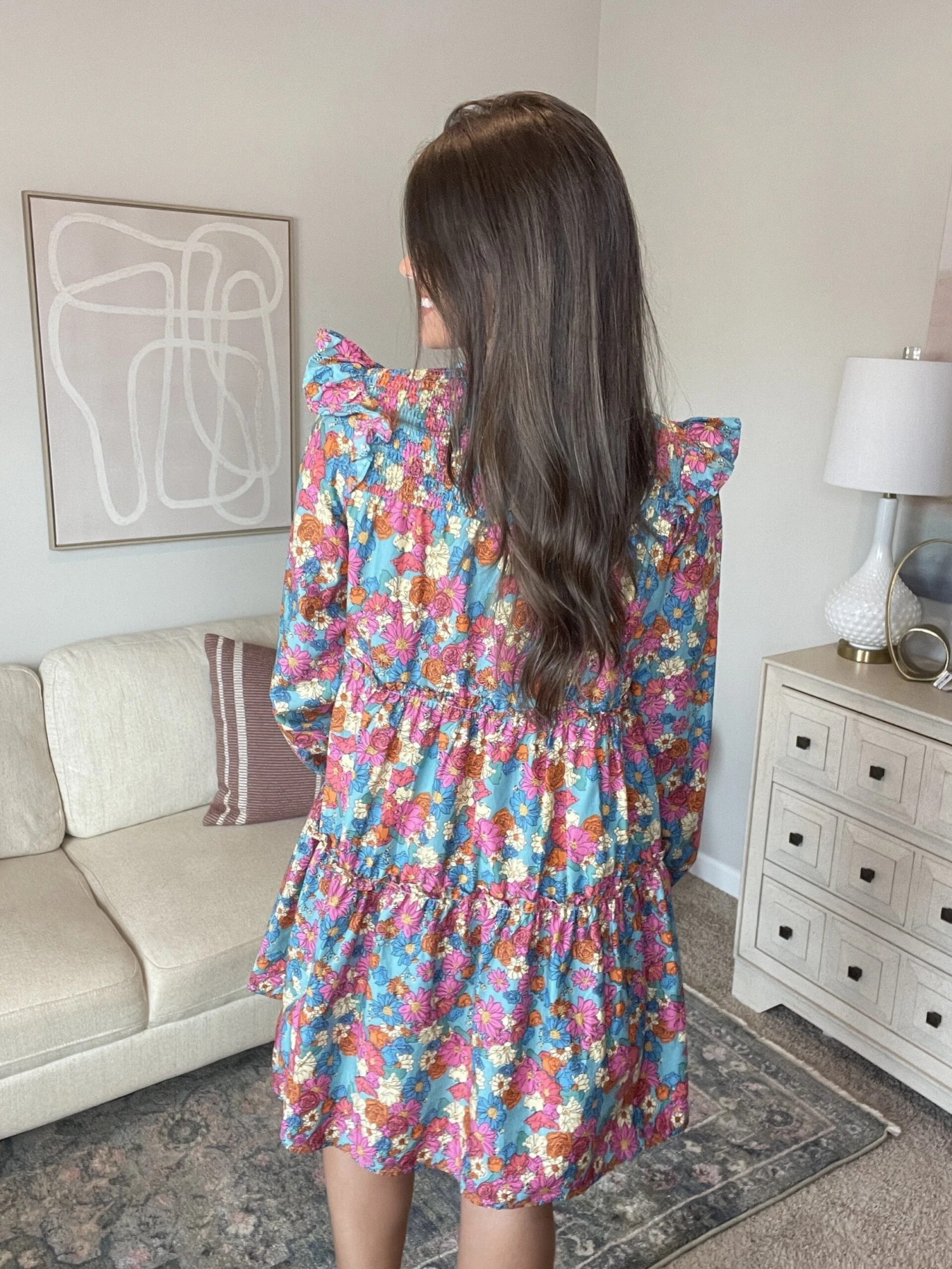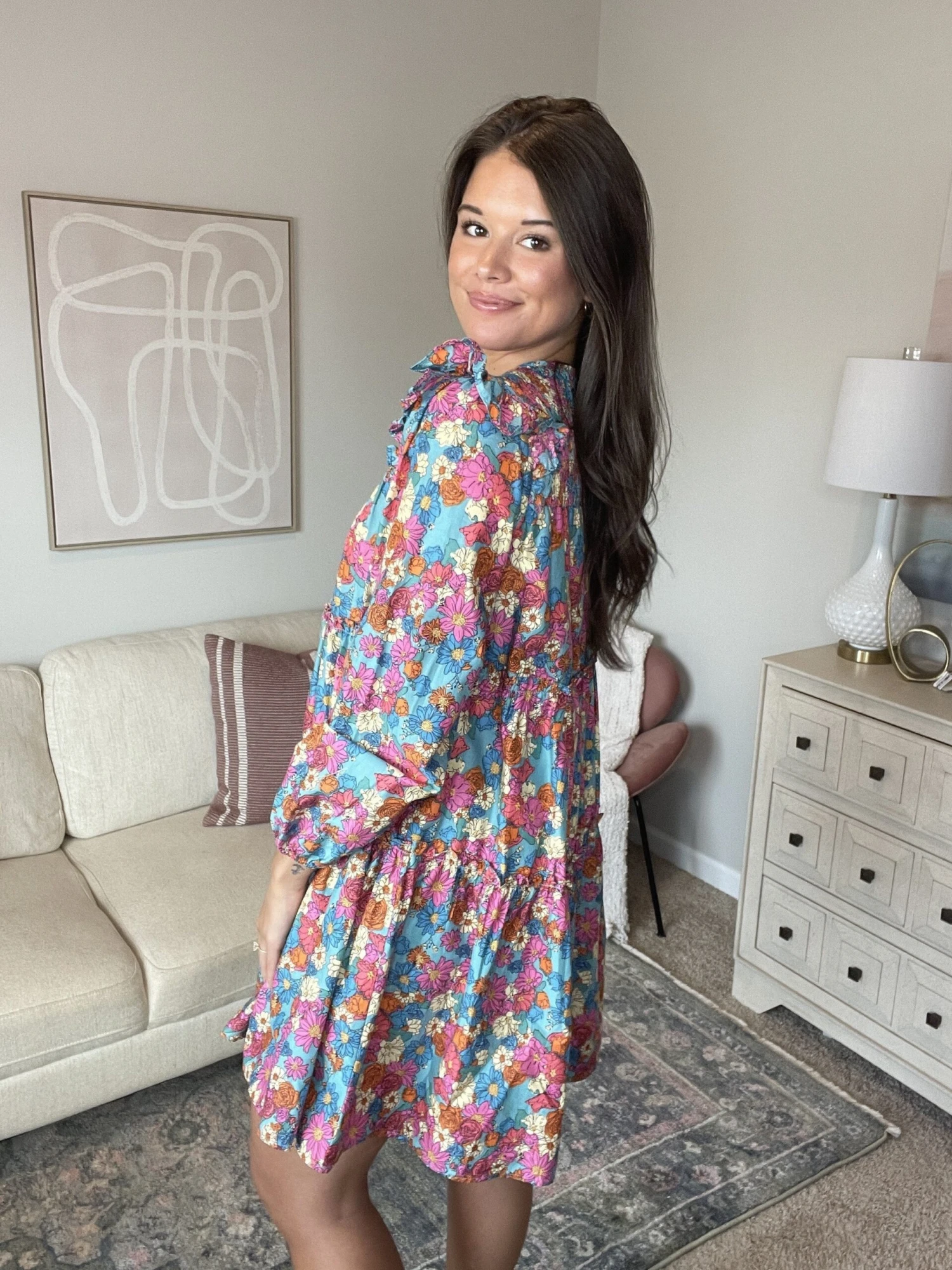 Features: Long Sleeves, Tiered, Smocked Chest, Tie V Neck