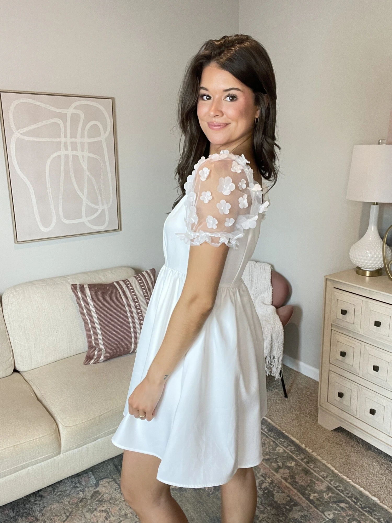Features: Floral Puffed Sleeves