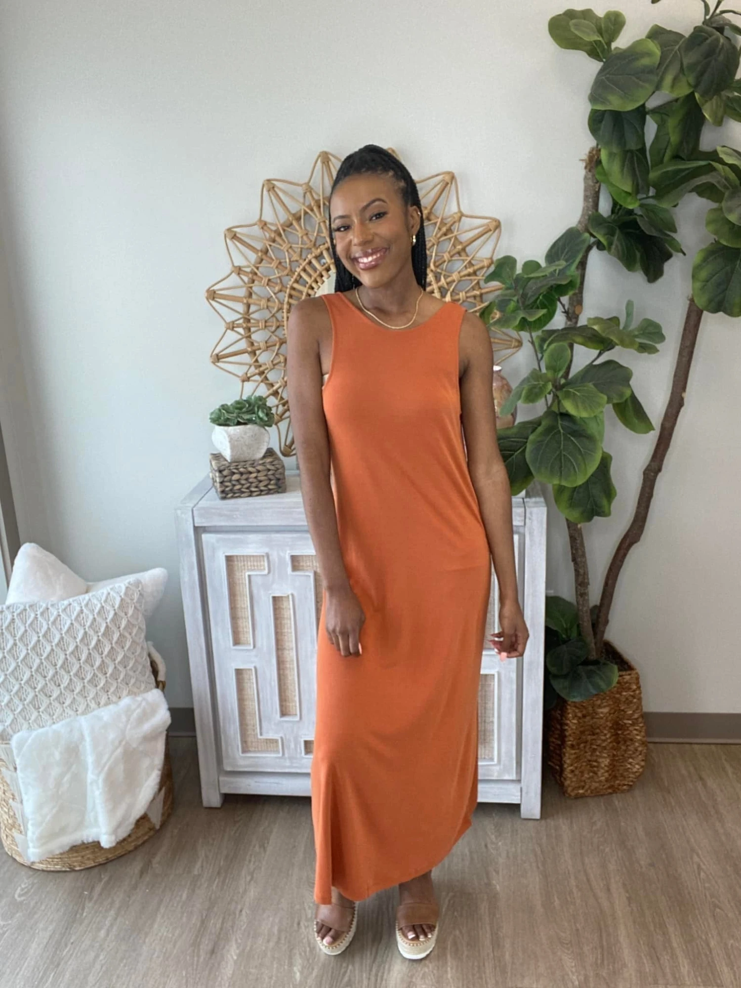 The “Happening Fast Dress” has arrived! This maxi dress is a must have! With a gorgeous back detail, you cannot go wrong! So stylish, this one is perfect for the summer! Snag one before they sell out, you know they will!