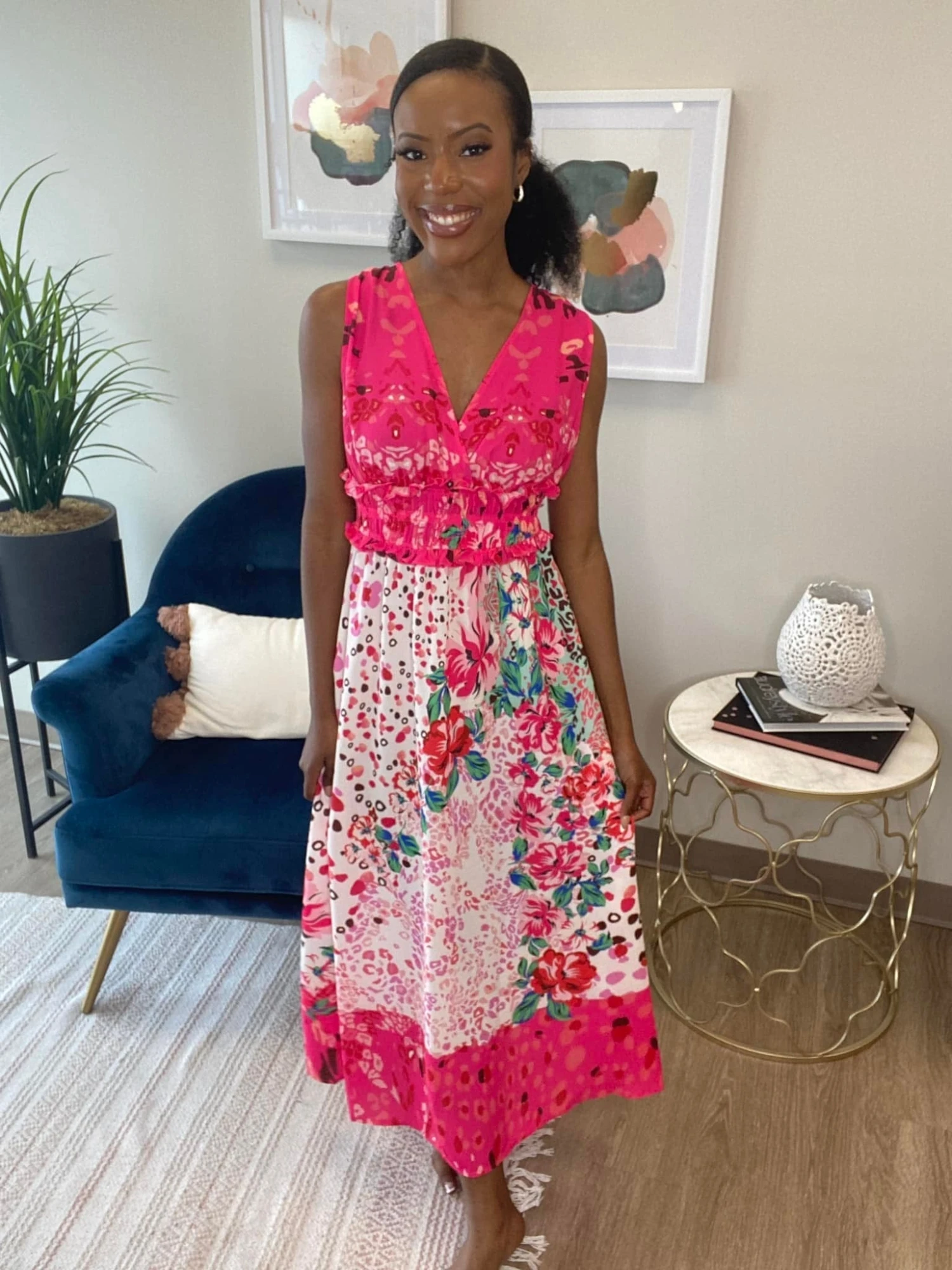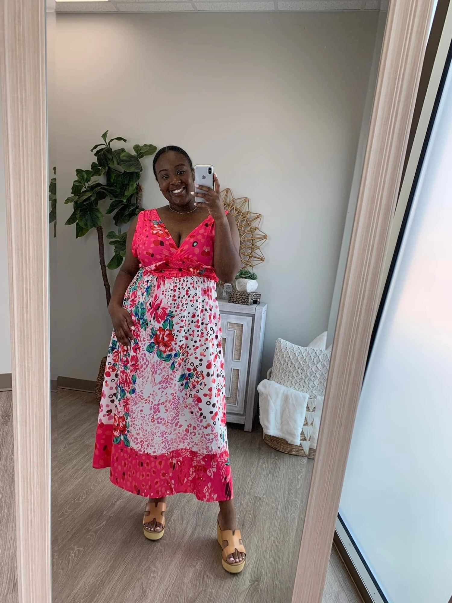 The “Organized Mood Dress” has arrived! This super cute floral print maxi dress is just what you need! We are loving the back tie! Be sure to snag one before they sell out!