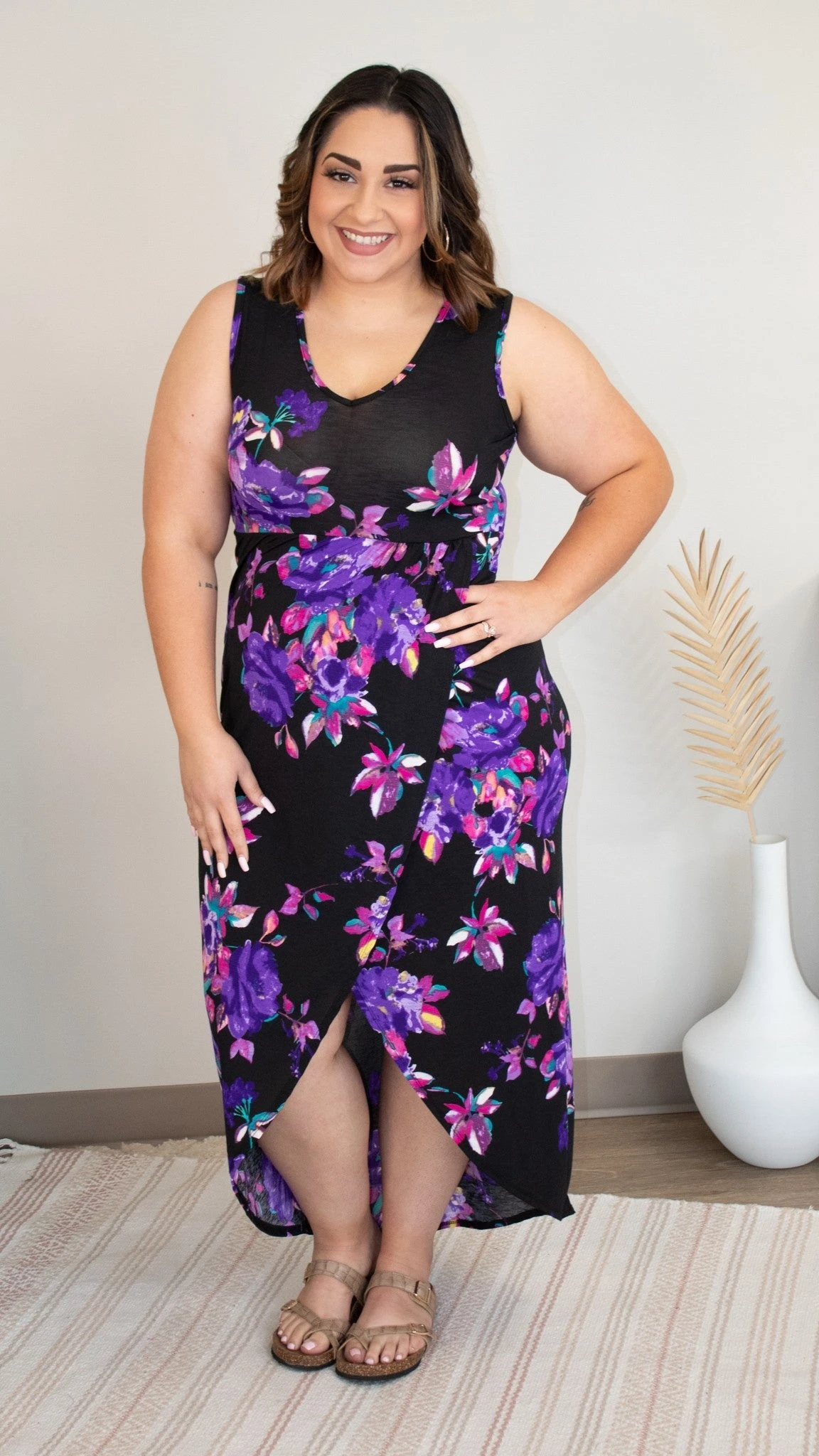 This maxi dress if fierce! The black dress with the gorgeous floral print is so flattering. And we are loving the high-low style! Diva, make sure you snag one of these for your closet so you have it for your next event!