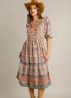 Features: Print, V-Neck, Midi, Dress w/Ruffles and Tassel