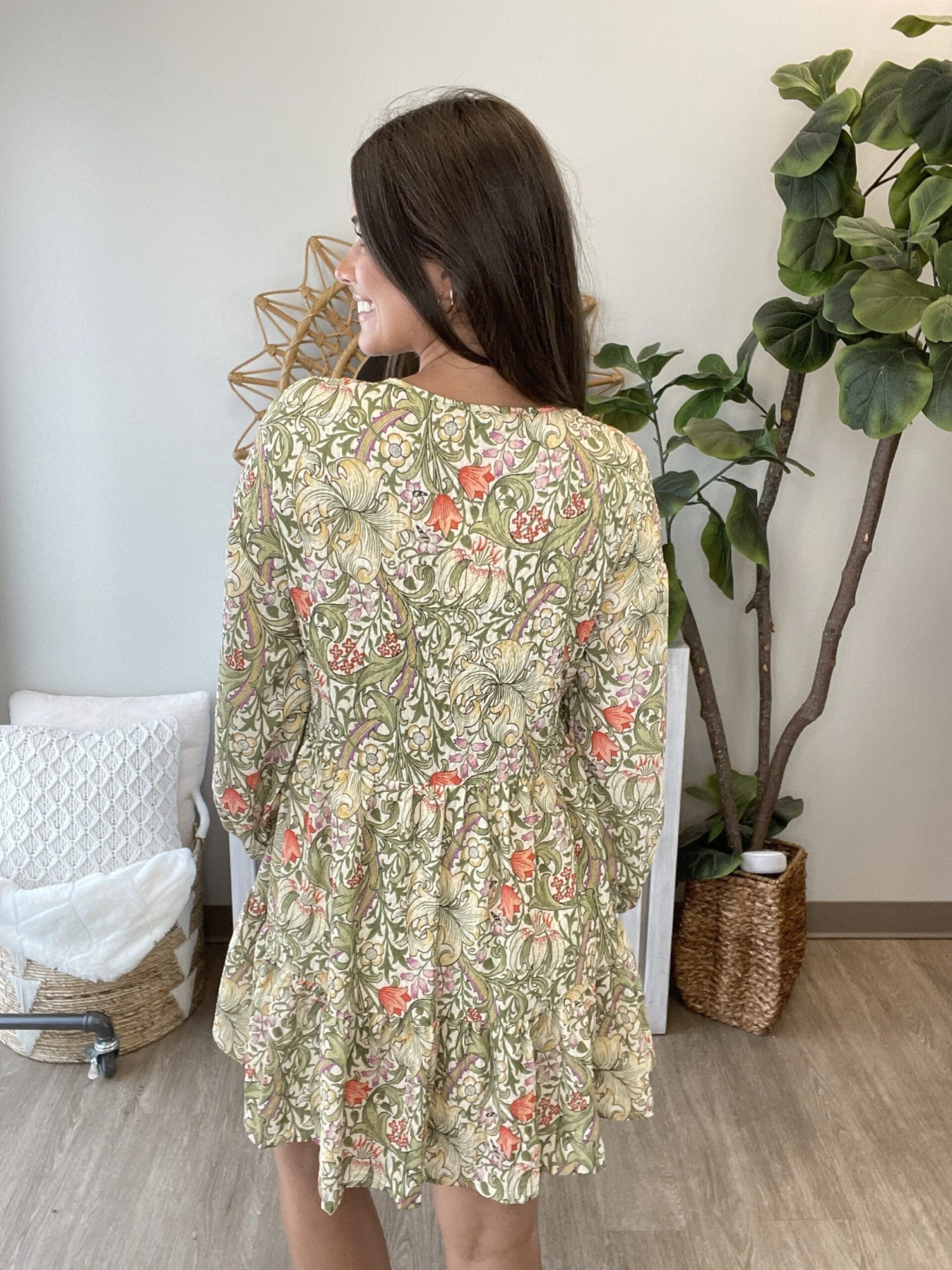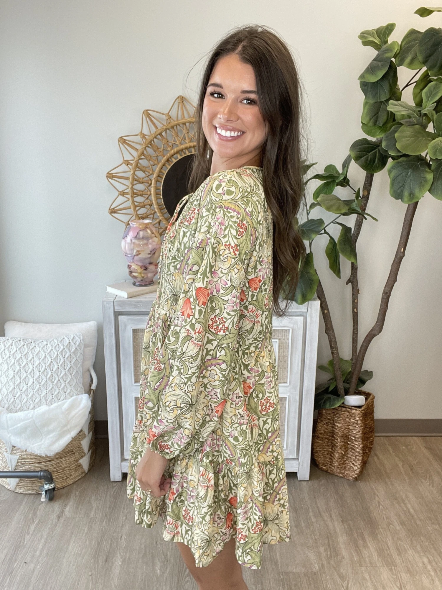 Features: Split Neck, Long Sleeves, Lined, Floral Print