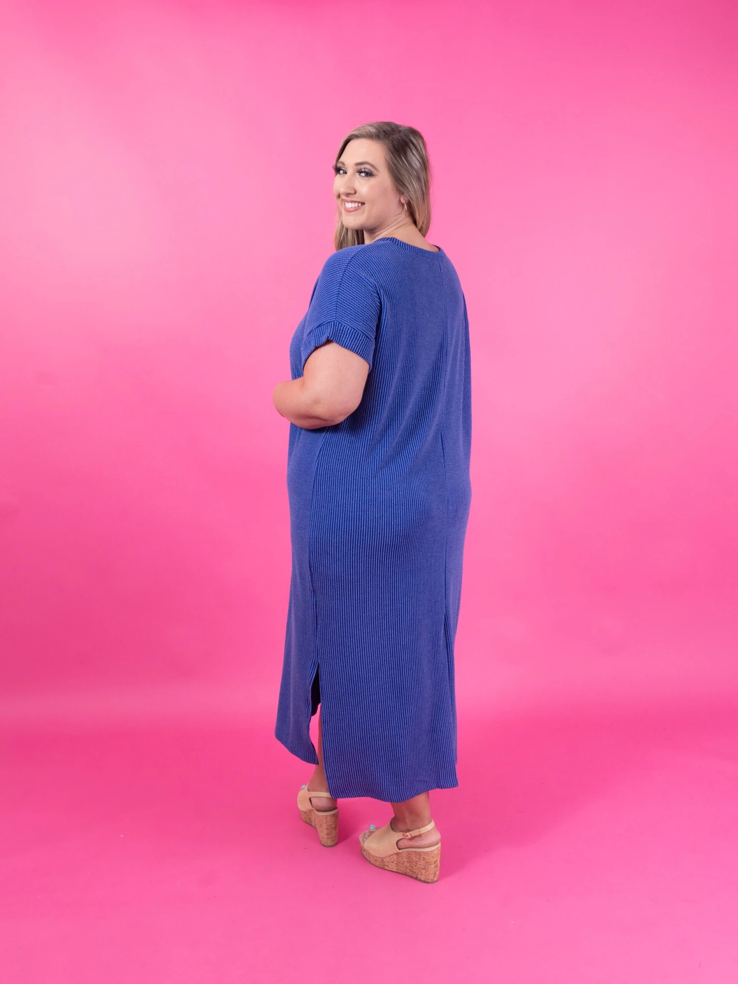 Features: Short Sleeves, Side Slits, Ribbed, Round Neck