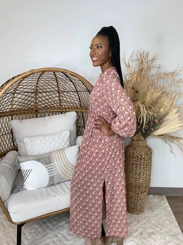 The “Suave Kiss Dress” has arrived! This adorable floral print maxi dress is essential to everyones wardrobe! This super cute dress is smocked and has side slits! Perfect for any season! Be sure to snag one while you can!