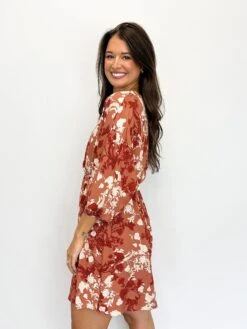 Floral Print 3/4 Sleeve V-Neck Mini Dress | S – L