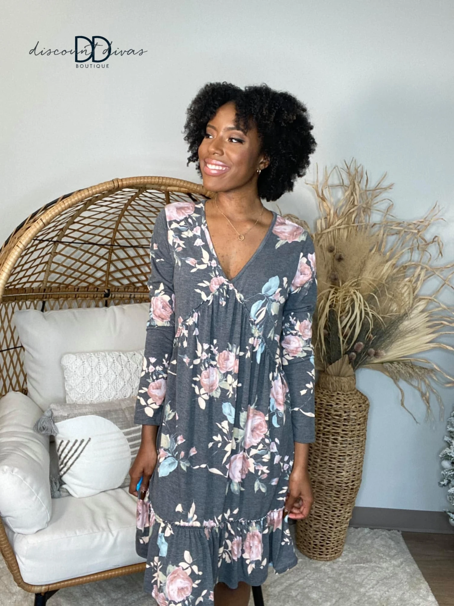 The “Walk Tall Dress” has arrived! This gorgeous floral dress is a must have for your wardrobe! The ruffle bottom and the fit of this dress is so flattering! The best part is, it has POCKETS! Be sure to snag one before they are gone!